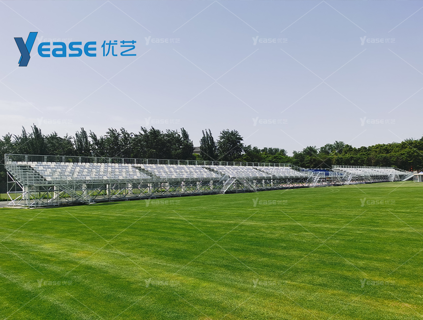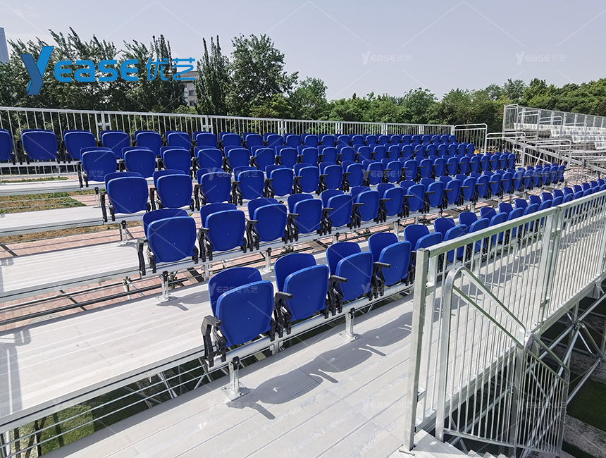 堅固耐用的鋼結構看臺系統(tǒng),滿足戶外場館長期使用與高承載要求。